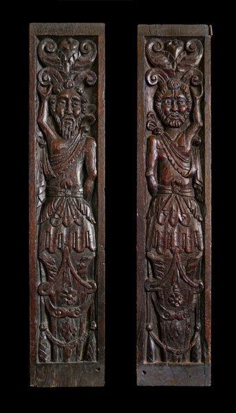 An Interesting and Unusual Pair of Early 16th Century Carved Pilasters